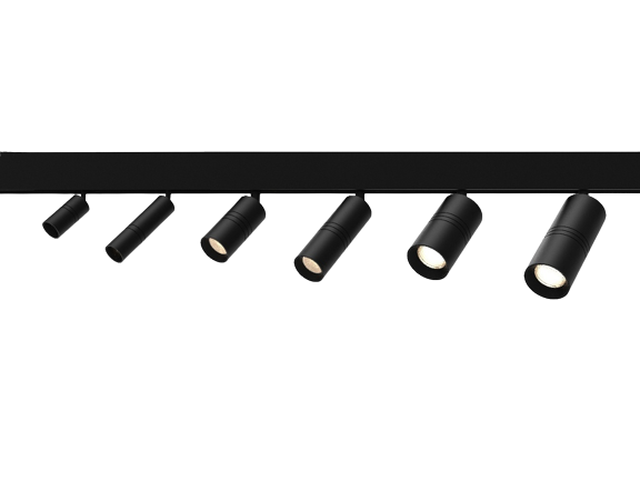 согласно дизайн проекту. Подобрать тип светильников на магнитную трековую систему. Пожелание заказчика – высокая яркость с возможностью управления световым потоком.